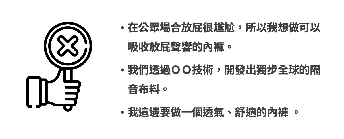 為何「可以吸收放屁聲響的內褲」不算產品企劃,因為完整的產品企劃應該包含三塊:需求、作法、產品屬性
